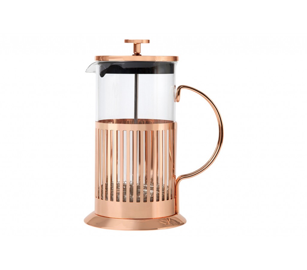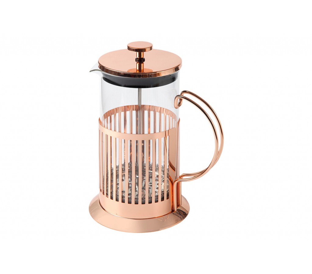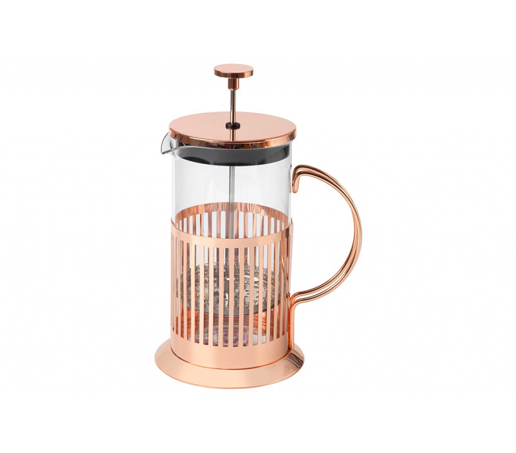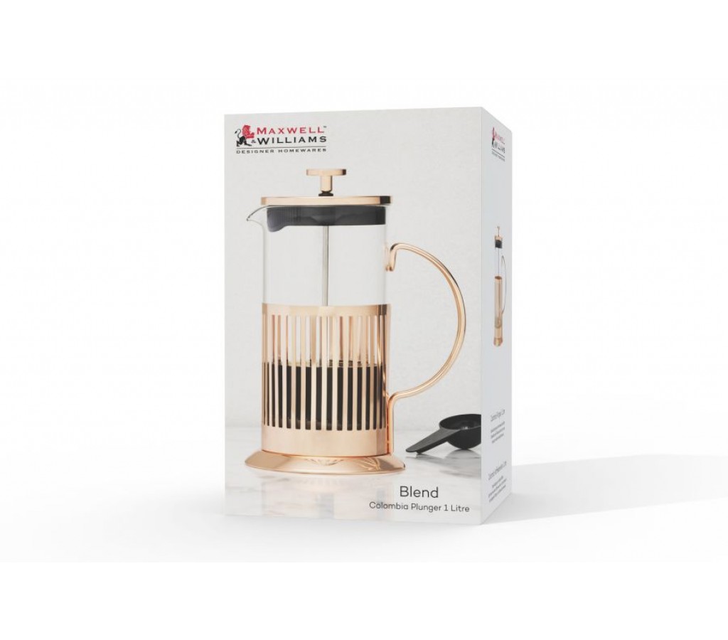 Френч-пресс Blend Colombia Maxwell & Williams 1 л розовое золото. Колба (боросиликатное стекло) - 1,0 л, держатель колбы (нержавеющая сталь 201, покрыта гальваническим розовым золотом), крышка с поршнем-фильтром (нержавеющая сталь 304, пластик), мерная ложка (пластик). Подарочная коробка. Мыть мягкими моющими средствами. Можно использовать в ПММ.
