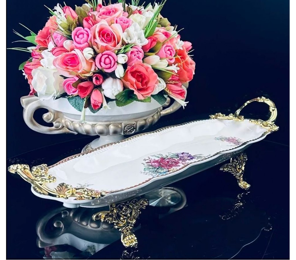 Блюдо 44 см прямоугольное Астория от Ленарди (Lenardi) на ножках с ручками из фарфора подойдет для сервировки фруктов. Блюдо упаковано в подарочную коробку. Рекомендуется мыть руками.