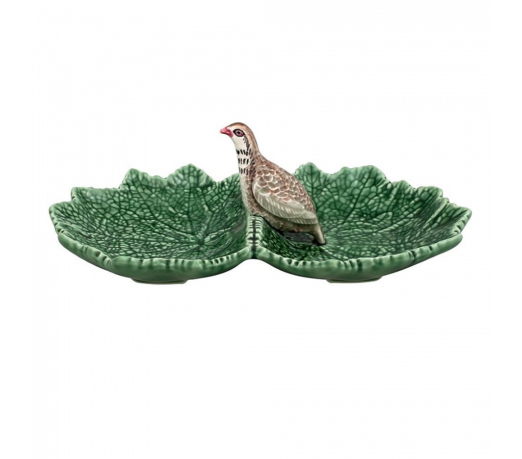 Блюдо двухсекционное Bordallo Pinheiro Листья 22см с куропаткой