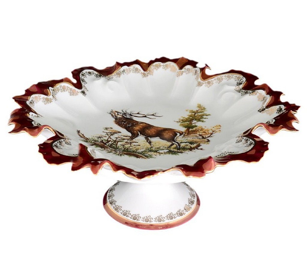 Блюдо фигурное круглое 35см на ножке Охота красная Корона Queens Crown