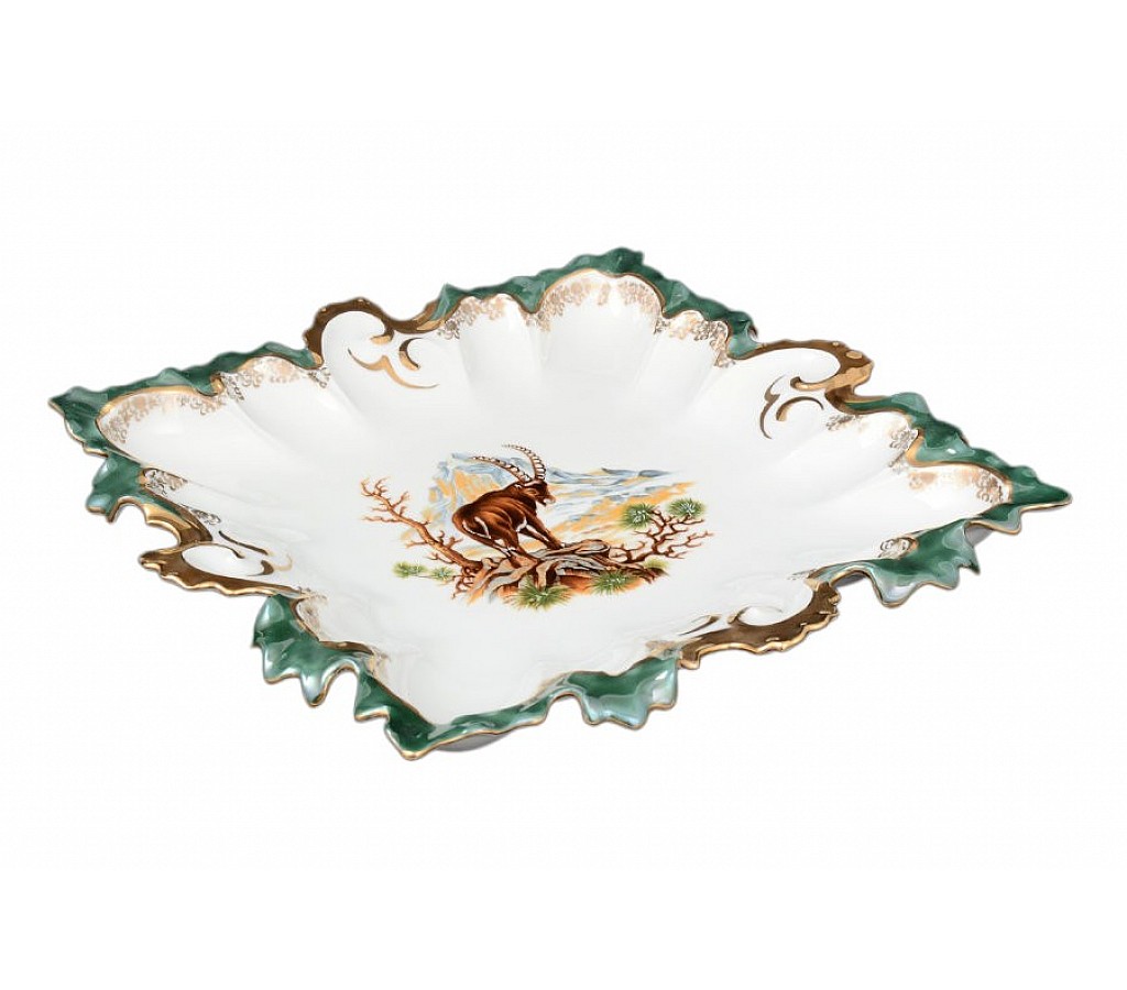 Блюдо фигурное квадратное 36 см Охота зеленая Корона Queens Crown
