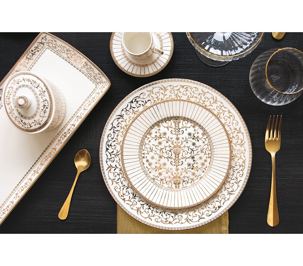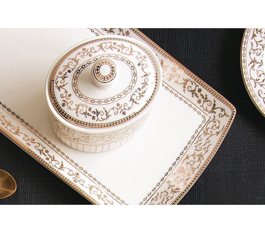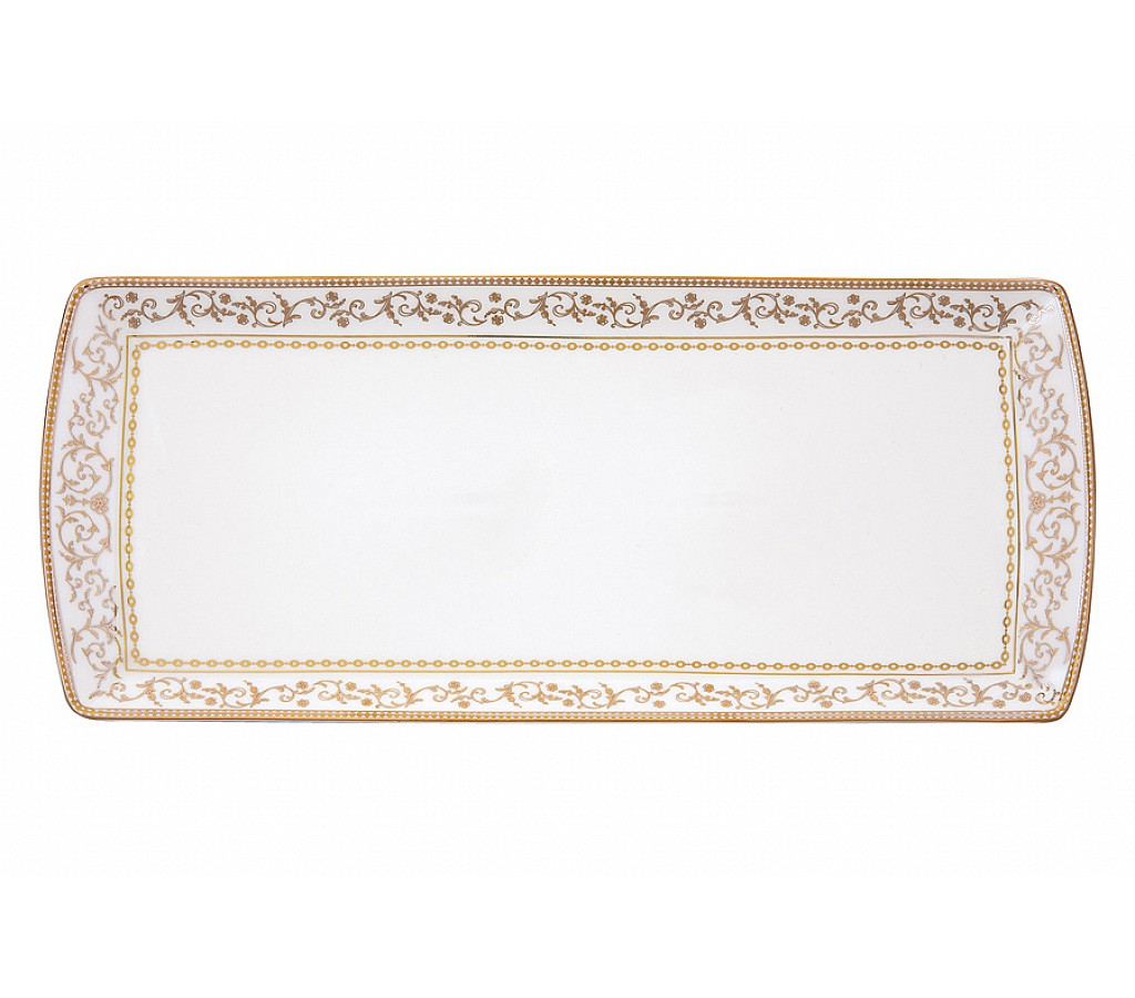 Блюдо, 35х15 см, фарфор N, белое, прямоугольное, с золотистым орнаментом, Golden. Подарочная упаковка. Мыть теплой водой с применением мягких моющих средств. Не использовать в СВЧ и в посудомоечной машине.