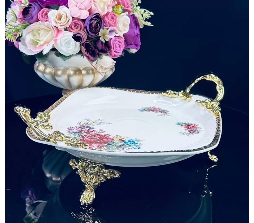 Блюдо круглое 34 см Астория от Ленарди (Lenardi) на ножках с ручками из фарфора подойдет для сервировки фруктов. Блюдо упаковано в подарочную коробку. Рекомендуется мыть руками.