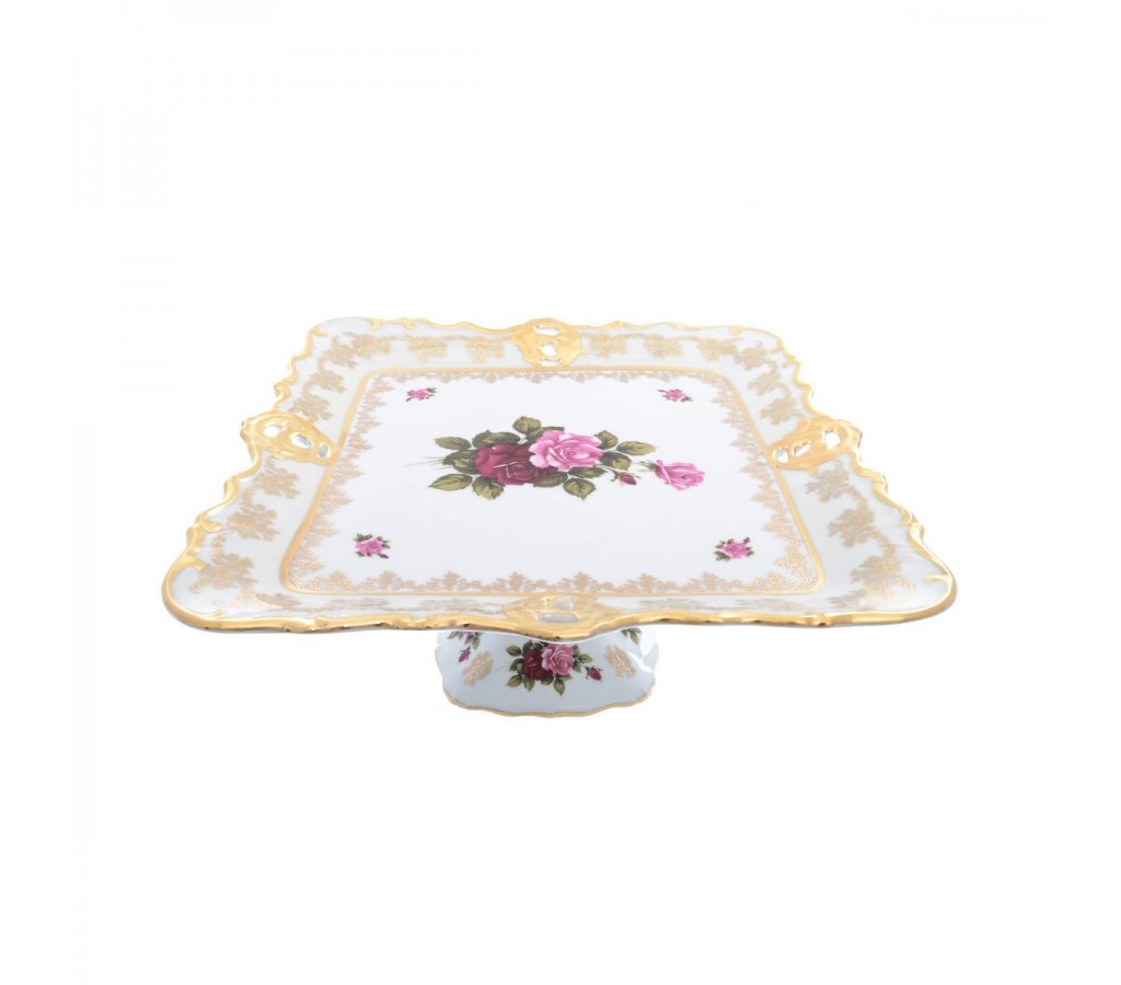 Блюдо квадратное на ножке Queen's Crown Роза перламутр 32 см. Не подходит для использования в СВЧ-печи. Рекомендуется мыть руками во избежание повреждения декоративного покрытия. Обычная картонная упаковка.