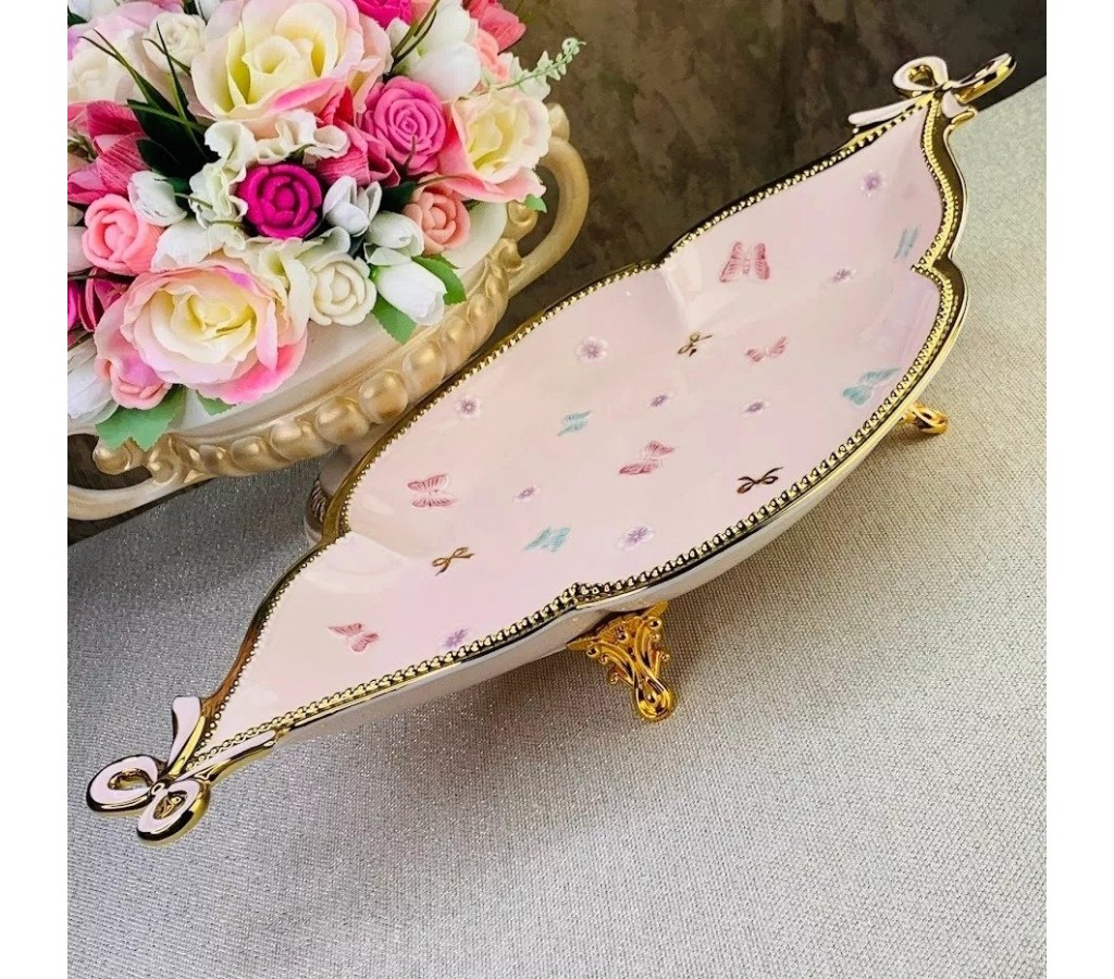 Блюдо Lenardi Бабочки розовые 48 см на ножках. Подарочная коробка. Рекомендуется мыть руками. Не подходит для использования в микроволновой печи.