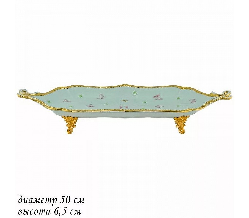 Блюдо Lenardi Бабочки зеленые 50 см на ножках. Подарочная коробка. Рекомендуется мыть руками. Не подходит для использования в микроволновой печи.