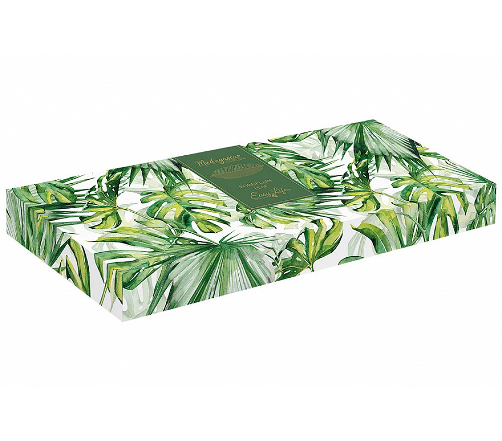Блюдо-листок Мадагаскар белое 47 х 19 см. Подарочная упаковка. Мыть теплой водой с применением жидких моющих средств. Можно использовать в СВЧ и посудомоечной машине.