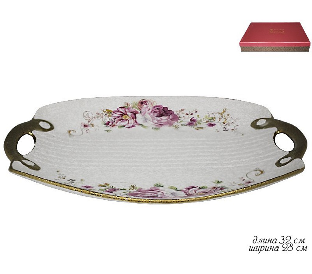 Блюдо для сервировки Мраморная Lenardi. Длина с ручками 32 см. Ширина 28 см. Подарочная коробка.