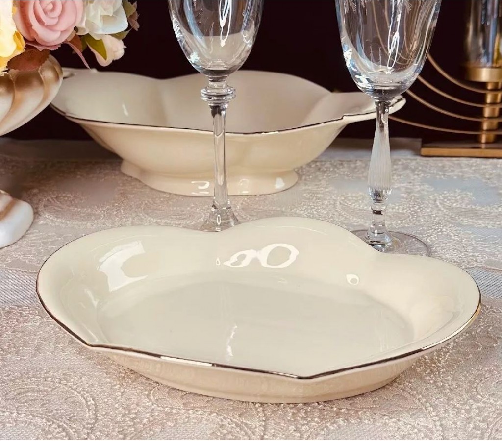 Блюдо овальное 23 см Мираж на ножках с ручками из фарфора подойдет для сервировки праздничного стола. Подарочная упаковка. Нельзя мыть в посудомоечной машине.