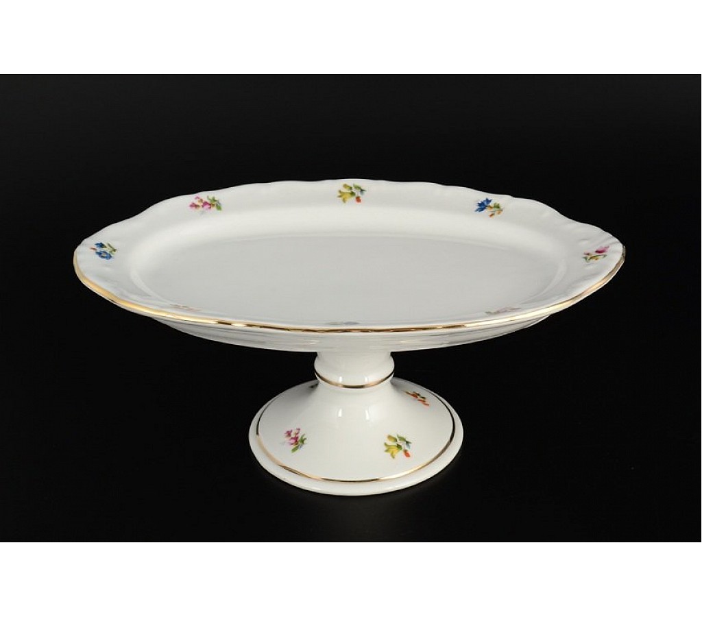 | Блюдо овалное 25 см на ножке Мелкие цветы отводка золото Корона Queens Crown | |
