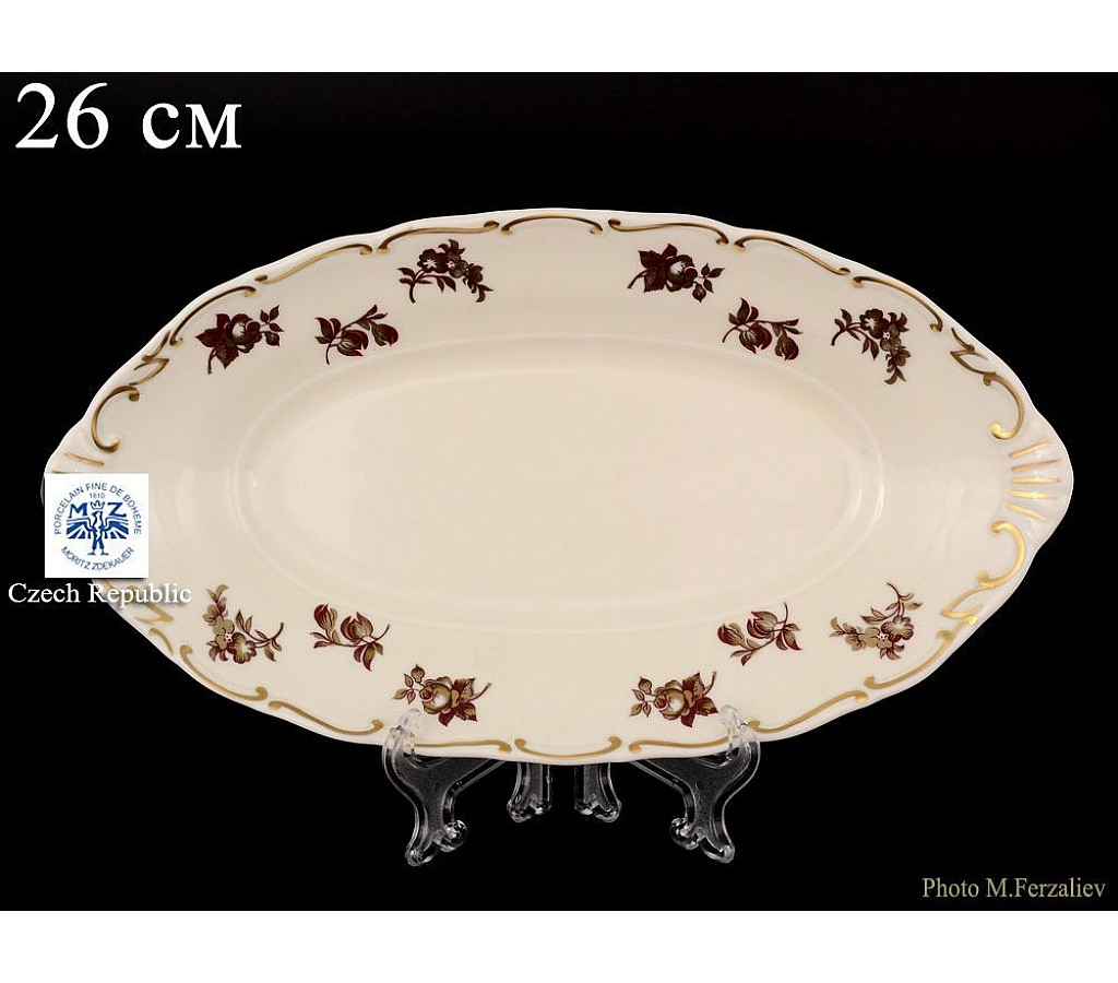 | Блюдо овальное 26 см Анжелика Слоновая кость Золотая роза MZ | |
