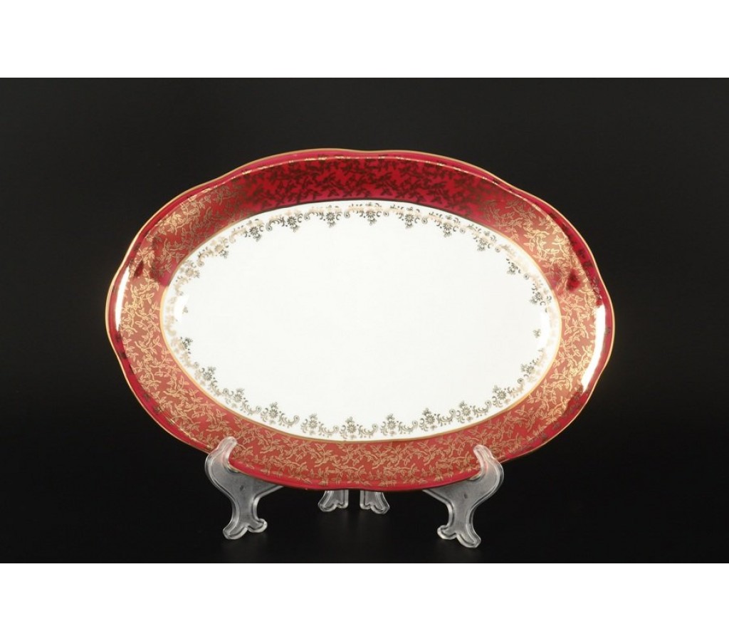 Блюдо овальное 32 см Красная паутинка Royal Czech Porcelain
