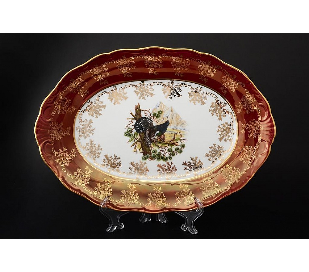| Блюдо овальное 32 см Магнолия Охота Красная MZ | |