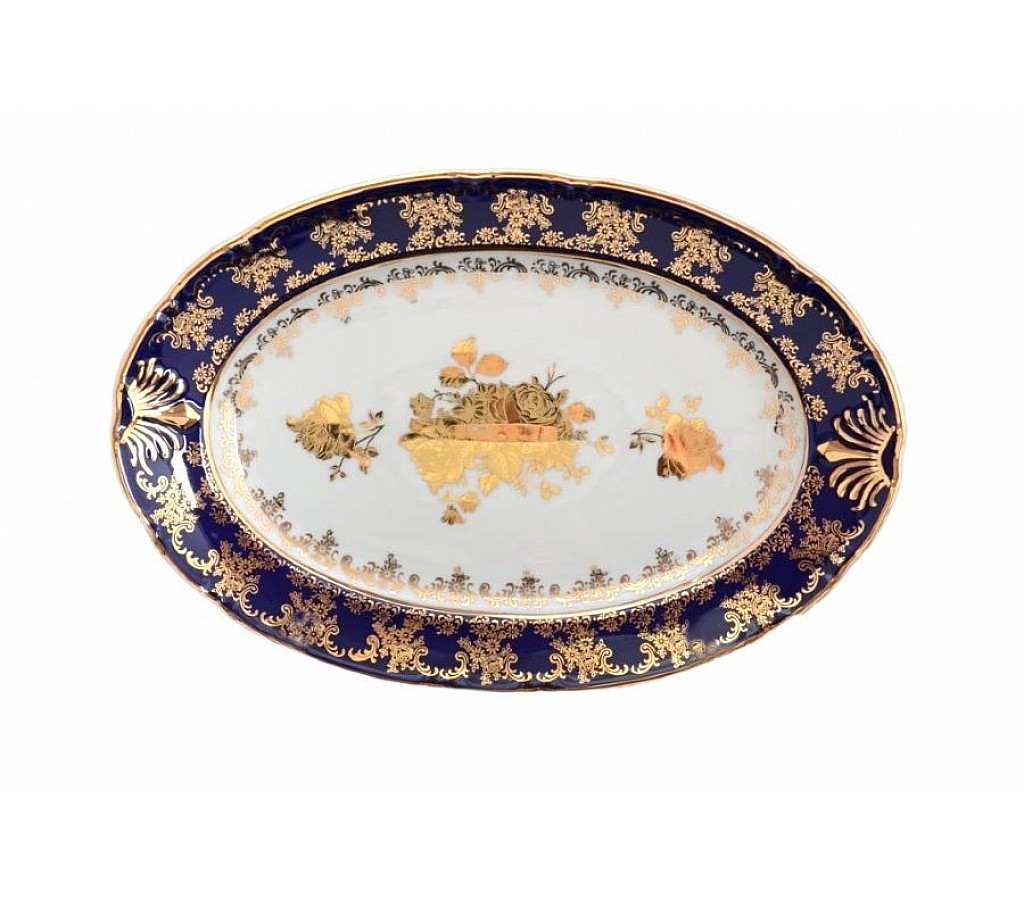 Блюдо овальное 32 см Thun Констанция Золотая роза Кобальт 7635400