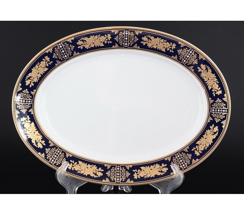 | Блюдо овальное 32 см Thun Луиза Золотая роза Кобальт | |