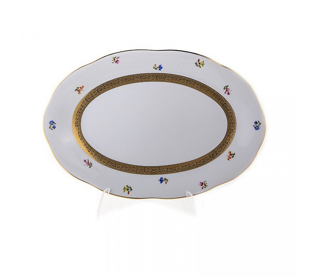 Блюдо овальное 33см Золотая лента и цветы Epiag Аляска 3052