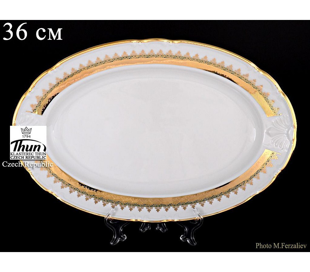Блюдо овальное 36 см Тхун (Thun) Констанция Изумруд Золотой орнамент это изделие высочайшего качества от известного производителя Thun. Блюда необходимая вещь в каждом доме, а так же прекрасный вариант подарка близкому человеку. В интернет магазине посуды Exelera.ru вы можете купить различные предметы сервировки по привлекательной цене.