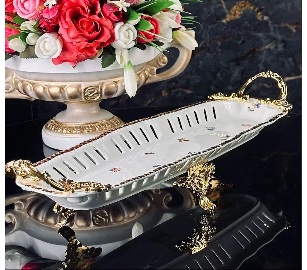 Блюдо овальное 38 см Годжи Lenardi (Ленарди) на ножках с ручками из белоснежного фарфора с золотой отделкой .Блюдо упаковано в подарочную коробку. Рекомендуется мыть руками.