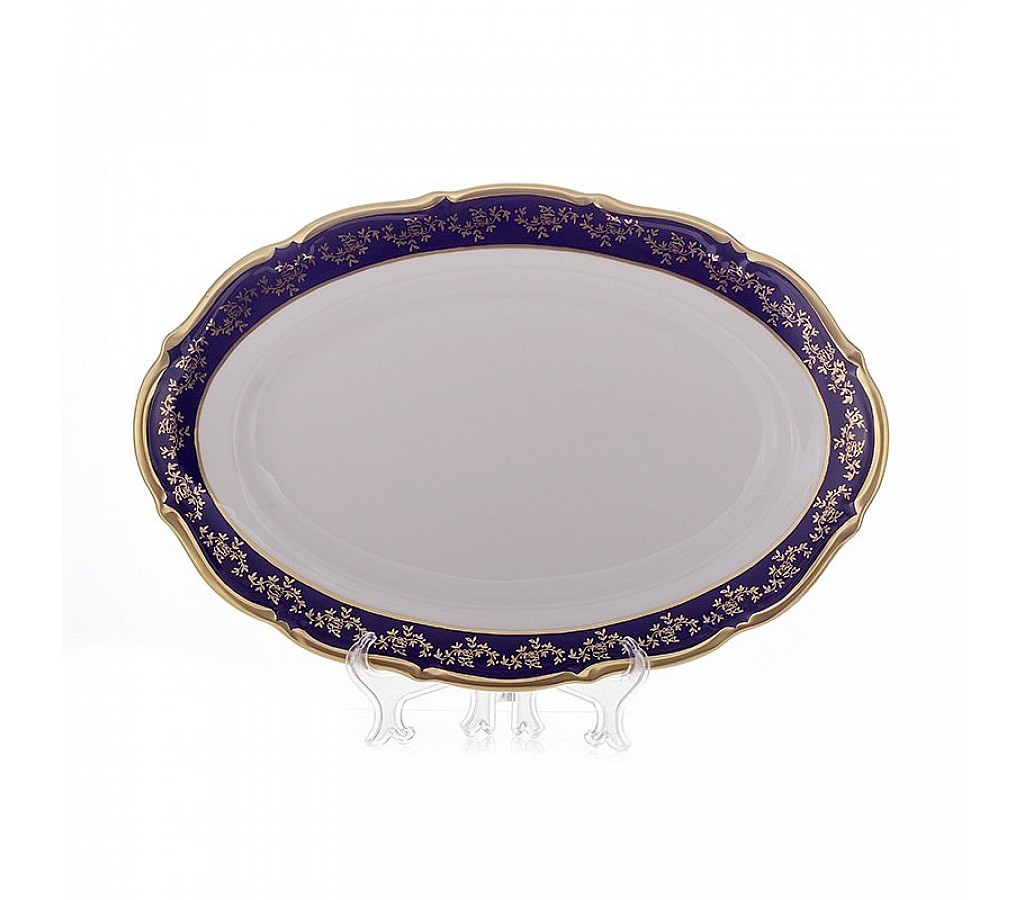 Блюдо овальное 38см Борокко кобальт 202 Bavarian Porcelain
