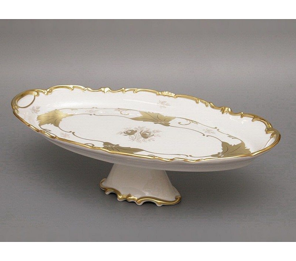 - Блюдо овальное на ножке Кленовый лист белый Weimar Porzellan 50 см