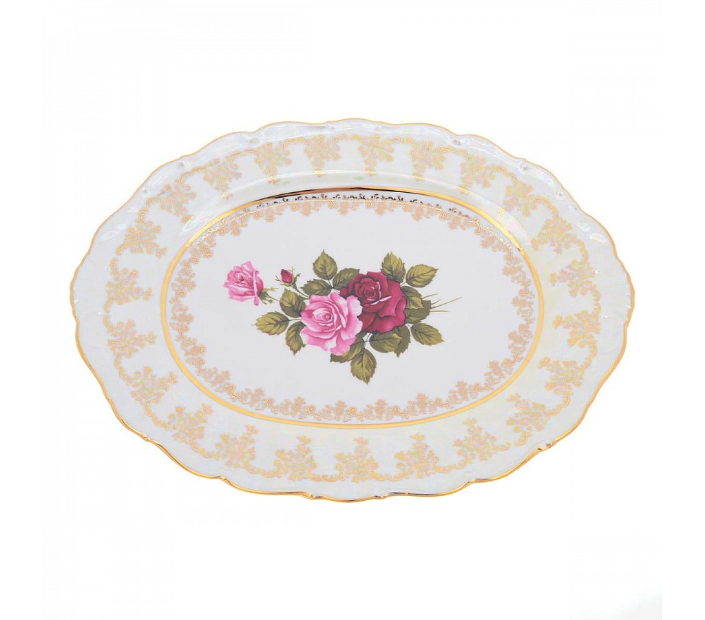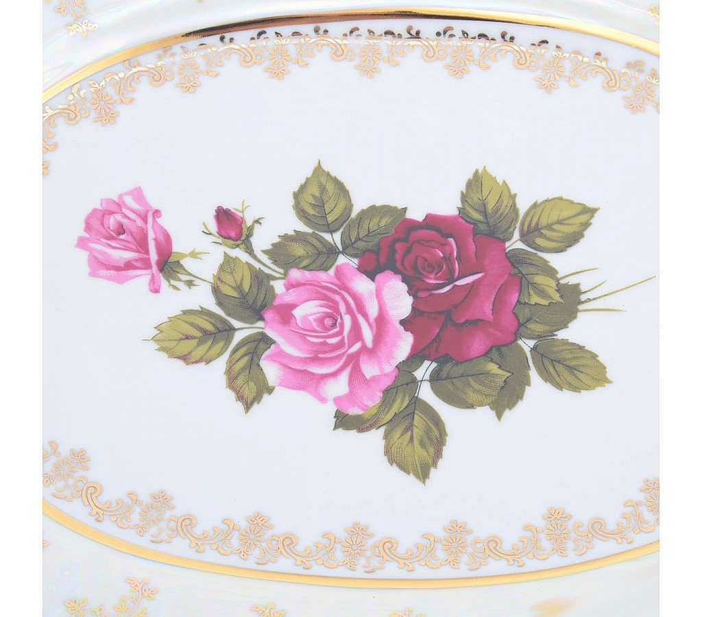 Блюдо овальное на ноге Queen's Crown Aristokrat Роза 36 см. Не подходит для использования в СВЧ-печи. Рекомендуется мыть руками во избежание повреждения декоративного покрытия. Обычная картонная упаковка.