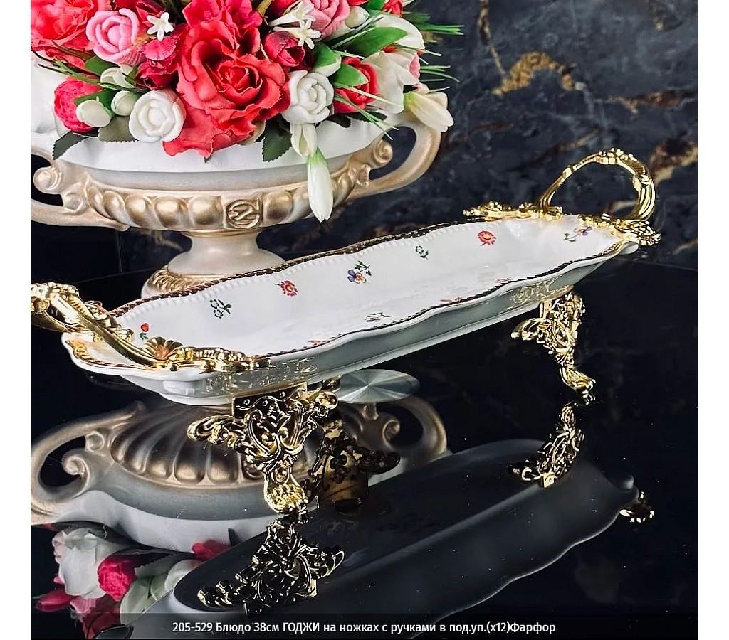 Блюдо прямоугольное 38 см Годжи Lenardi (Ленарди) на ножках с ручками из фарфора подойдет для сервировки фруктов. Блюдо упаковано в подарочную коробку. Рекомендуется мыть руками.