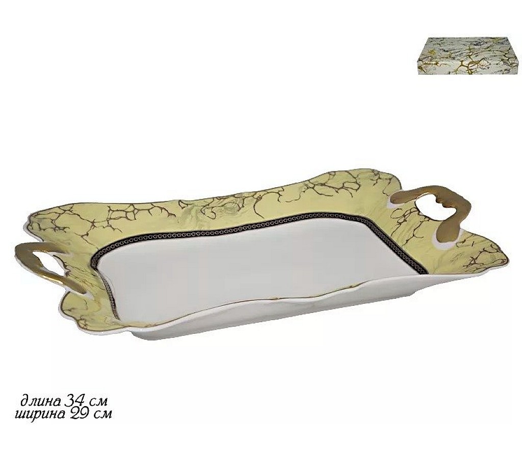 Блюдо прямоугольное Мрамор Lenardi 34 см с ручками. Рекомендуется мыть руками. Подарочная коробка.