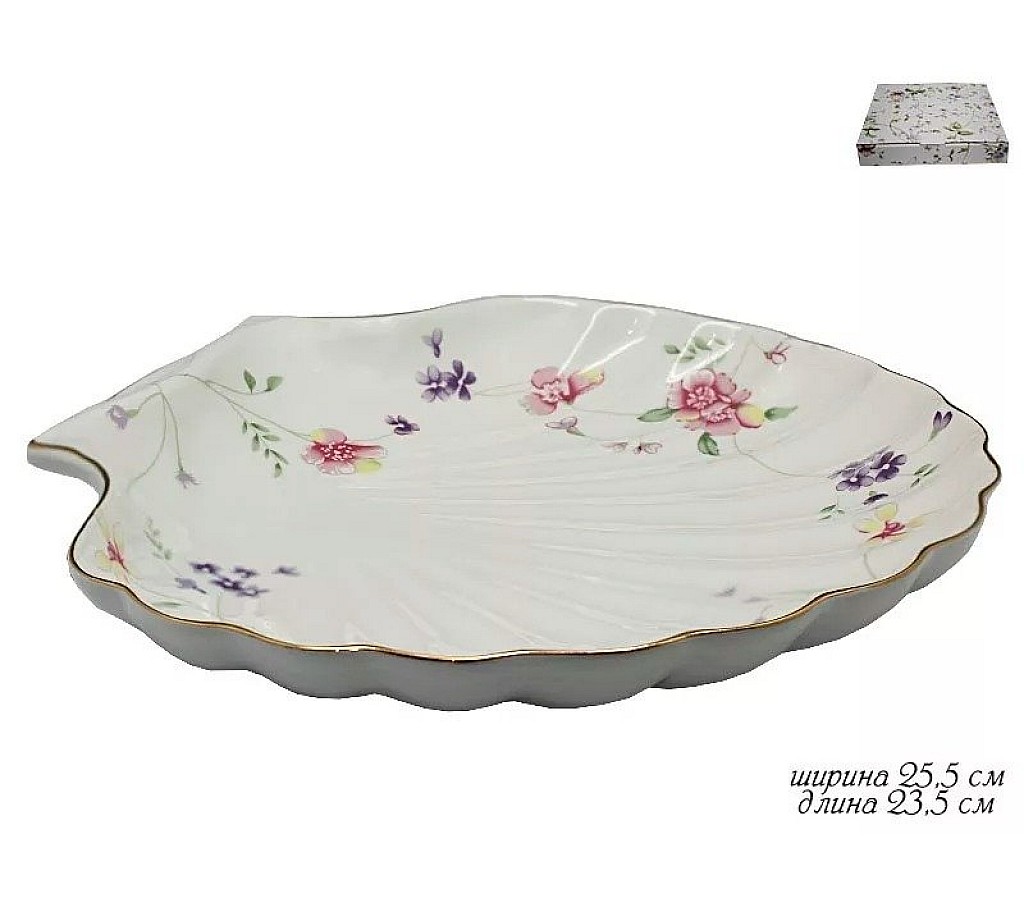 Блюдо Lenardi Флоренс в форме ракушки длиной 24 см. Упаковано в подарочную коробку. Не рекомендуется использовать в микроволновой печи и мыть в посудомоечной машине, по причине возможного повреждения золотого декоративного покрытия.