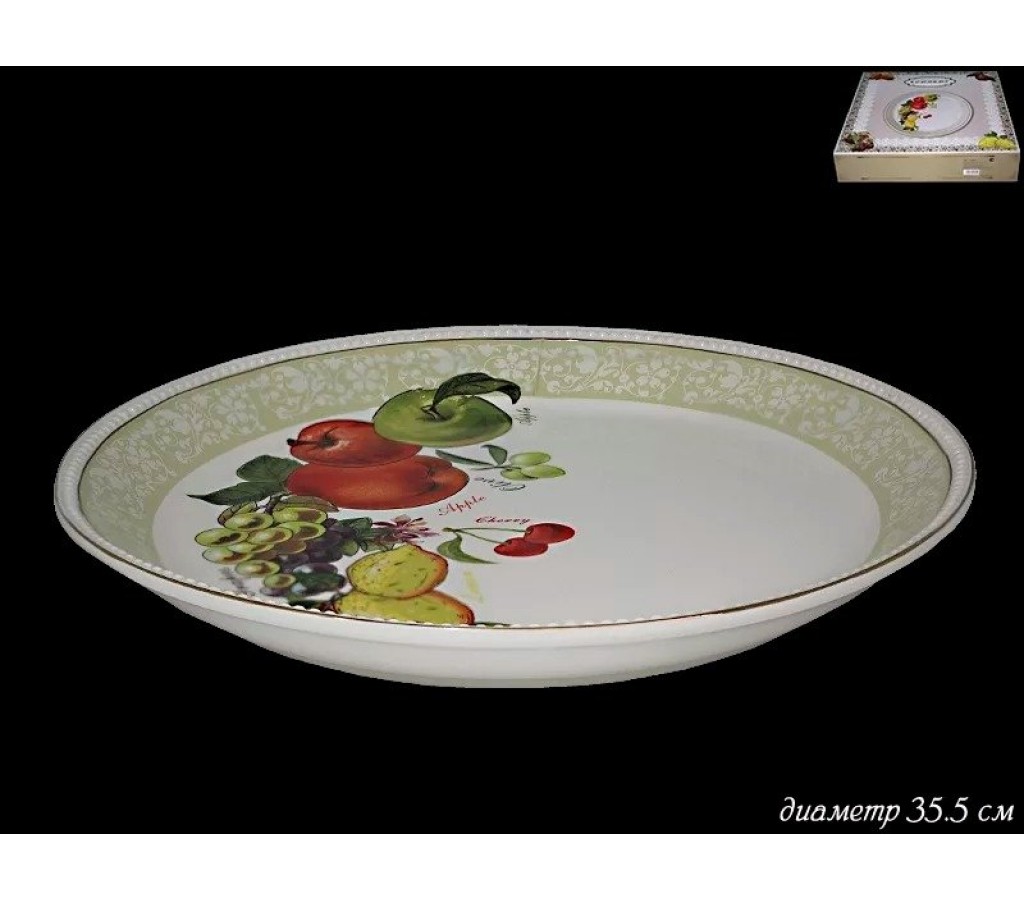 Круглое блюдо Lenardi Фрукты 35,5 см. Не рекомендуется мыть в посудомоечной машине и использовать в микроволновой печи. Подарочная коробка.