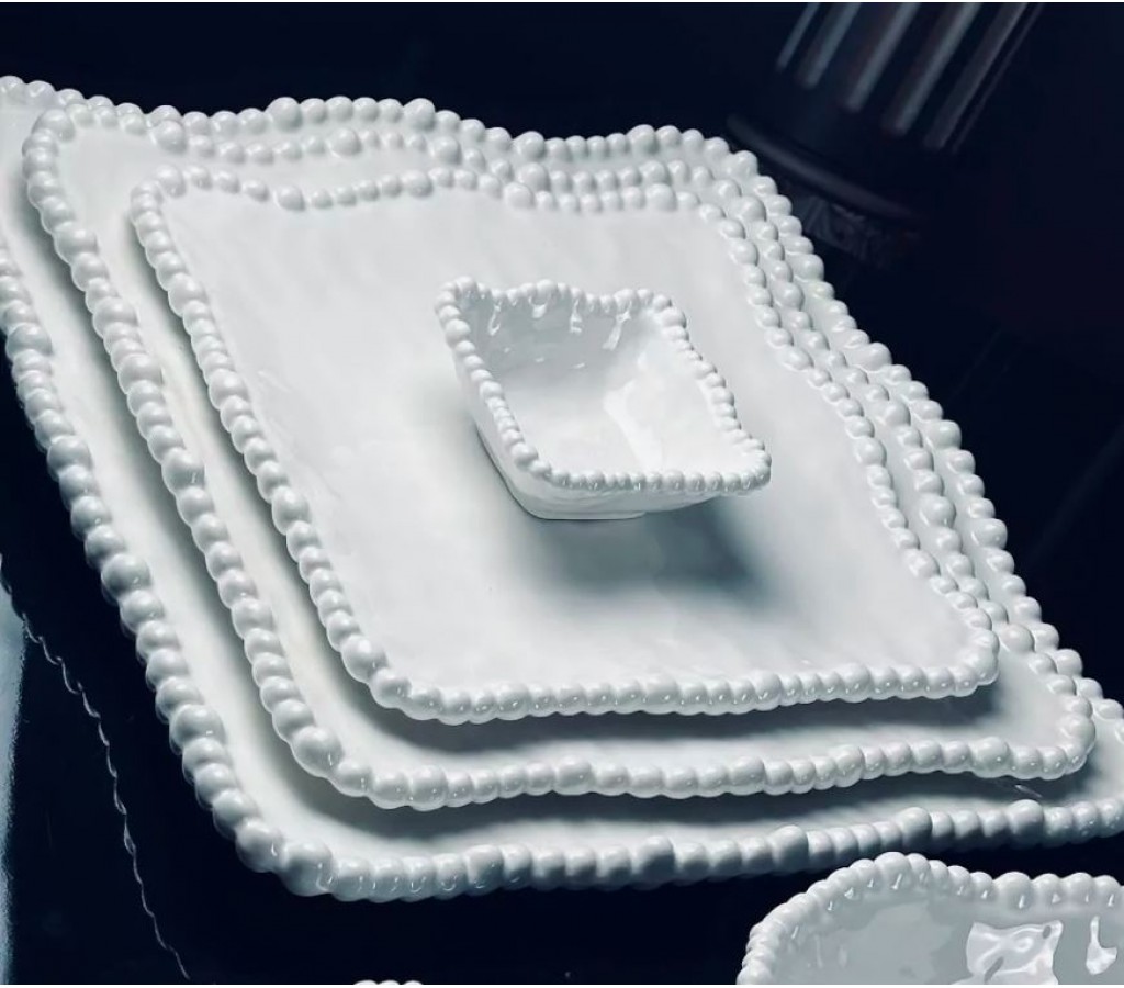 Коллекция Маринет изготовлена из высококачественного фарфора. Волнистые края с отделкой небольшими жемчужинами напоминают край морской волны, легкая текстура напоминает поверхность моря. Посуду можно мыть в ПМ и использовать в микроволновой печи, что крайне важно и очень удобно. Посуда данной коллекции идеально подходит как для домашнего, так и профессионального использования в ресторанах, кафе. На прочной глазури не остается следов от столовых приборов.Коллекция представлена различными вариантами блюд, салатников, тарелок, менажниц а также чайными наборами, которые можно приобрести по штучно. Все предметы коллекции имеют индивидуальную подарочную упаковку.