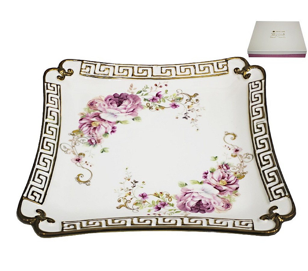 Квадратное сервировочное блюдо из керамики Азалия Lenardi. Длина 29 см. Упаковано в подарочную коробку.