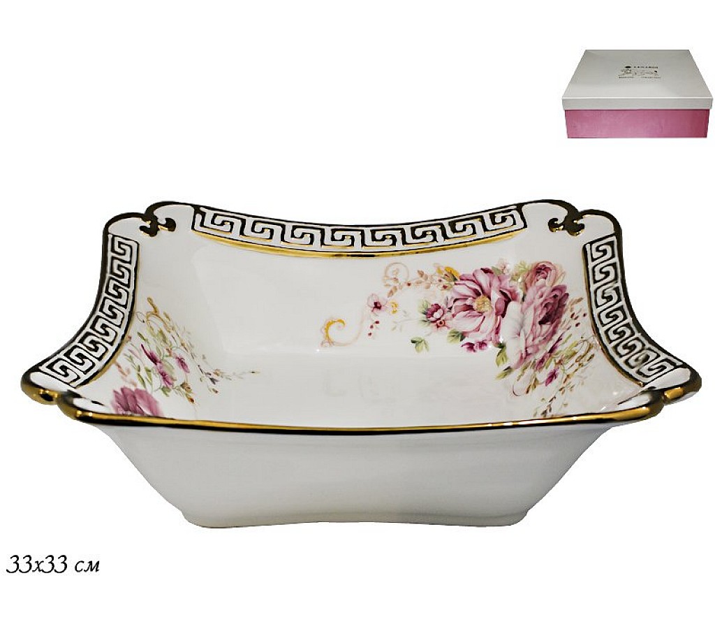 Керамическое глубокое квадратное сервировочное блюдо Азалия Lenardi. Длина 33 см. Упаковано в подарочную коробку.