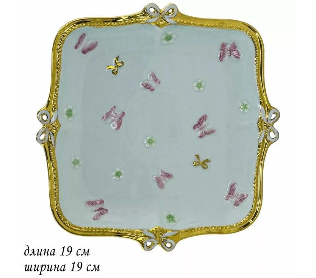 Квадратное блюдо Бабочки Lenardi зеленые 19 см. Подарочная коробка. Рекомендуется мыть руками. Не подходит для использования в микроволновой печи.