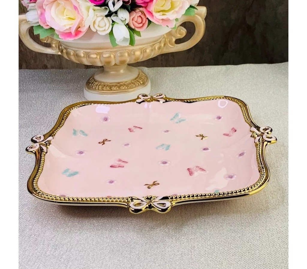 Квадратное блюдо Lenardi Бабочки розовые 30,5 см. Подарочная коробка. Рекомендуется мыть руками. Не подходит для использования в микроволновой печи.