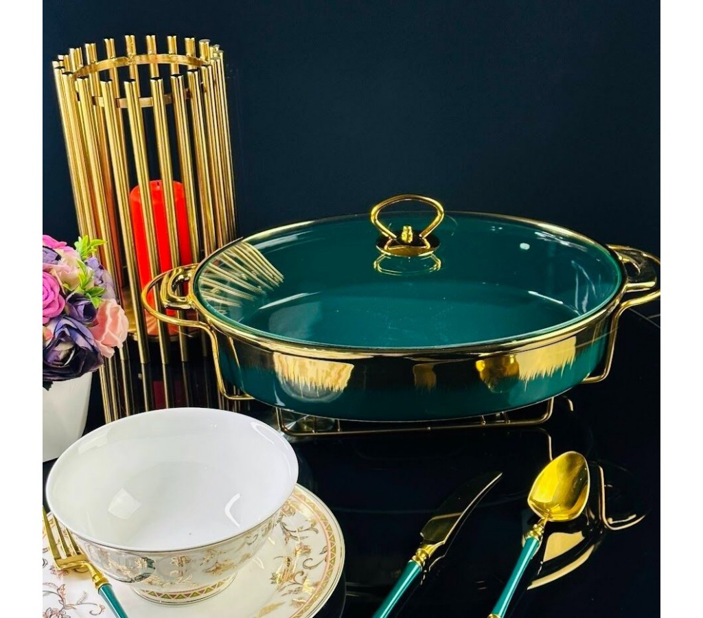 | Мармит сервировочный овальный 28 см с крышкой на подставке Rox green Lenardi | |