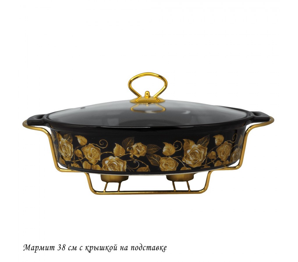 | Мармит сервировочный овальный 38 см с крышкой на подставке Rox Lenardi | |