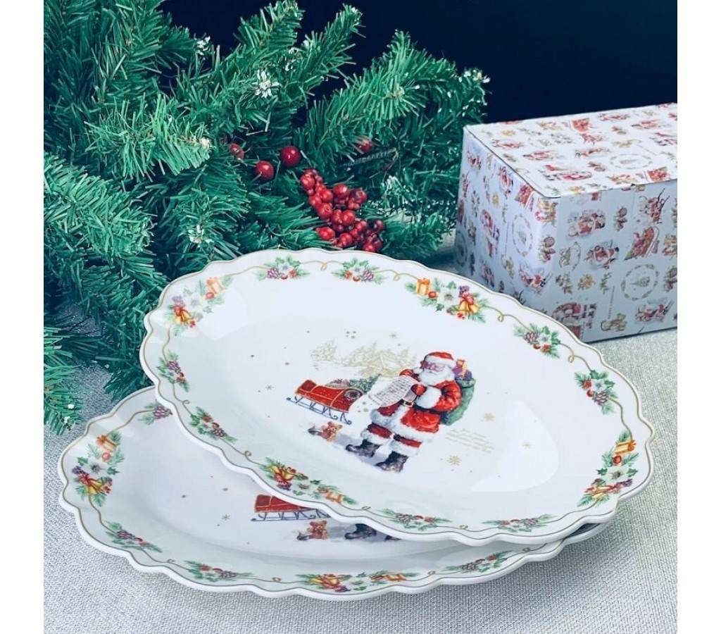 Набо из 2 овальных блюд Новогодний Lenardi 30 см. Можно мыть в посудомоечной машине. Не использовать в микроволновой печи. Упакован в подарочную коробку.