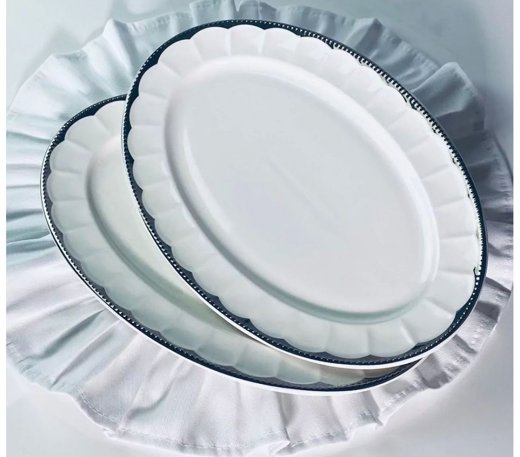 Коллекция фарфоровой посуды Империал невероятно торжественна и утончена. Отделка серебром создает вневременное и романтическое очарование, которое нравится людям всех возрастов. Посуду можно использовать для повседневного ужина, особых случаев или в качестве декоративного предмета. Сервизы, наборы посуды и отдельные предметы сервировки упакованы в подарочные коробки. Рекомендуется мыть вручную. Размер блюд 30,8х20,5х1,5 см