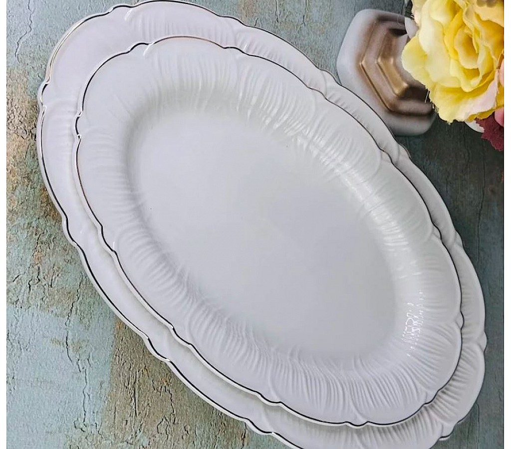 Овальное фарфоровое блюдо длиной 30 см Orchidea Lenardi. Упаковано в подарочную коробку. Не рекомендуется использовать в микроволновой печи и мыть в посудомоечной машине, по причине возможного повреждения декоративного покрытия.