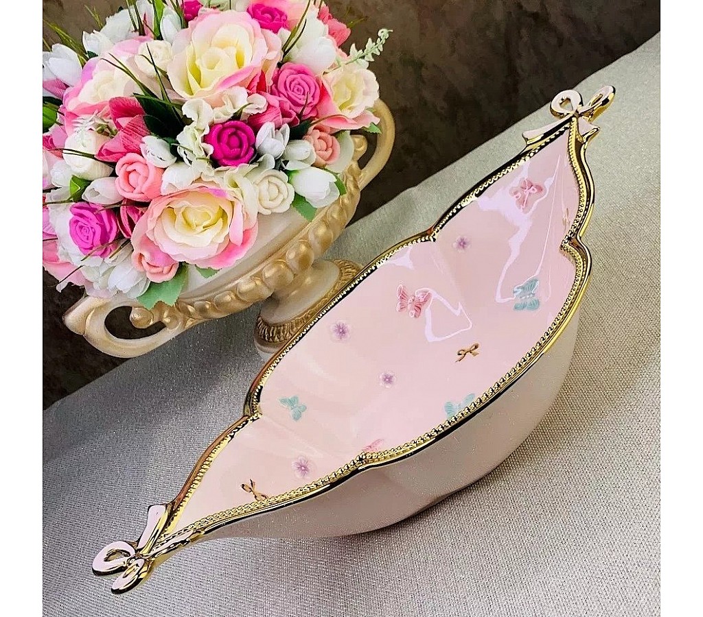 Овальное блюдо Lenardi Бабочки розовые 41 см. Подарочная коробка. Рекомендуется мыть руками. Не подходит для использования в микроволновой печи.