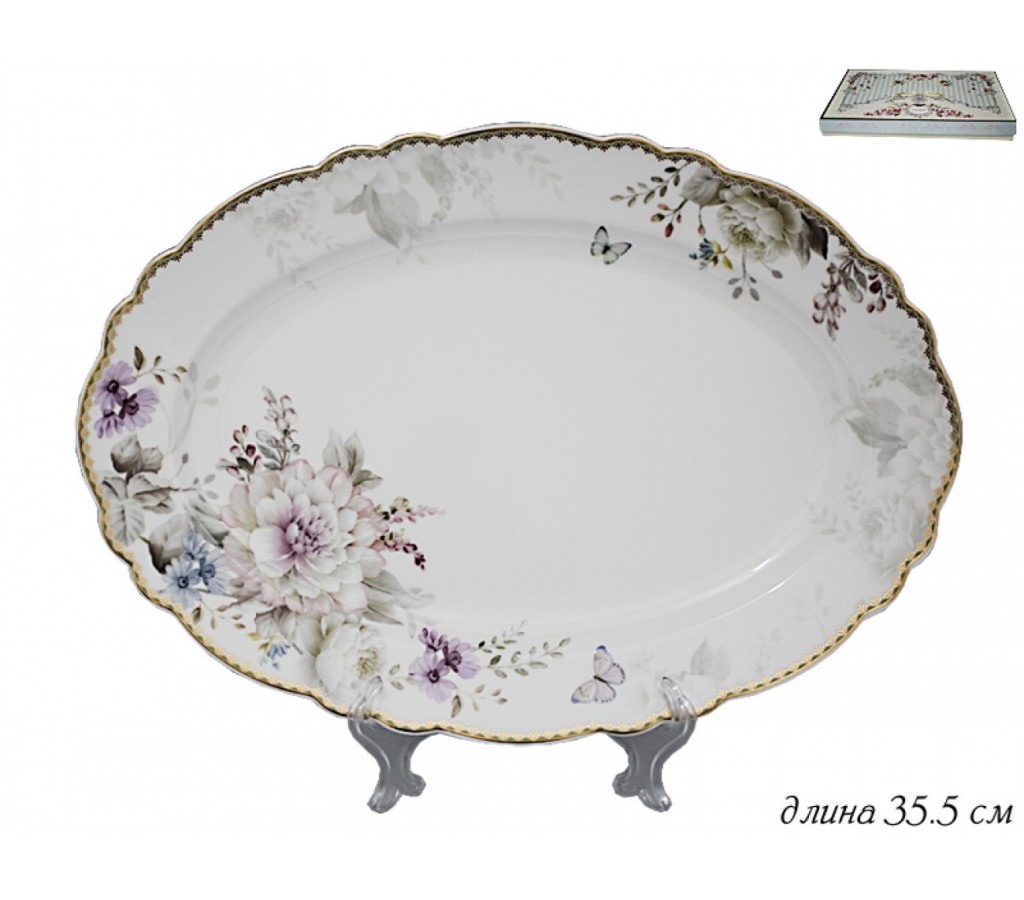 Овальное блюдо Lenardi Хризантемы 35 см. Не рекомендуется мыть в посудомоечной машине и использовать в микроволновой печи. Подарочная коробка.