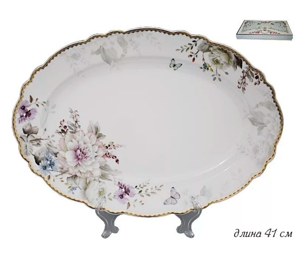 Овальное блюдо Lenardi Хризантемы 41 см. Не рекомендуется мыть в посудомоечной машине и использовать в микроволновой печи. Подарочная коробка.