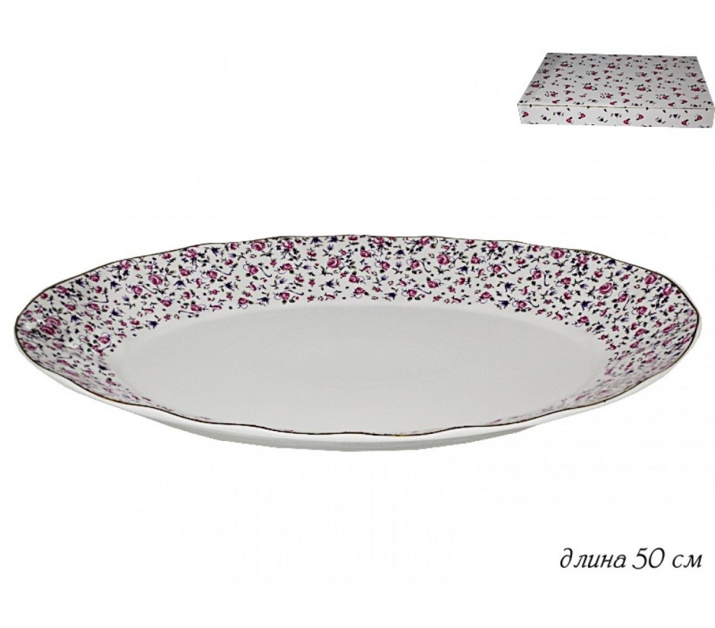 Овальное блюдо Розовый сад Lenardi 50 см. Рекомендуется мыть руками. Не использовать в микроволновой печи.