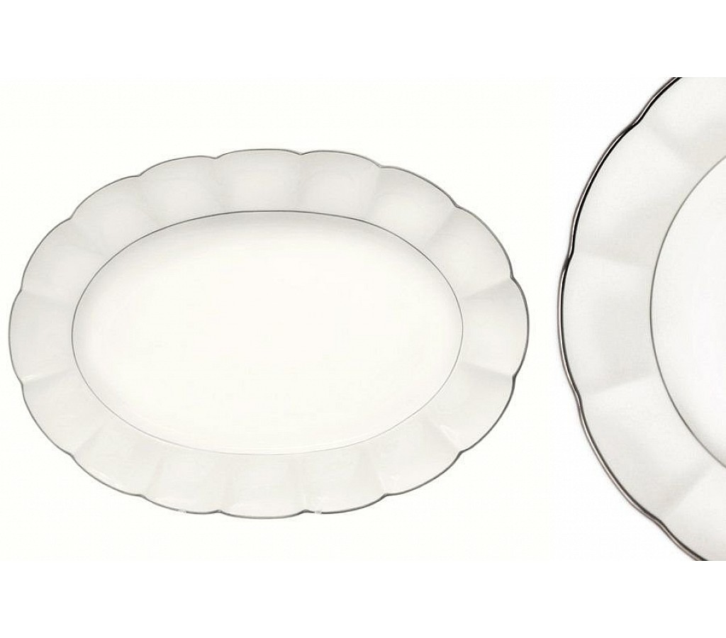 33254 Овальное блюдо Серебряный лотос 41 см