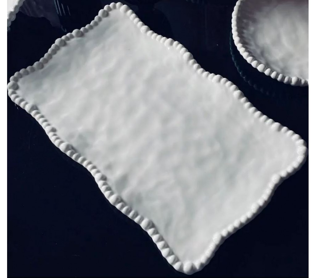 Коллекция Маринет изготовлена из высококачественного фарфора. Волнистые края с отделкой небольшими жемчужинами напоминают край морской волны, легкая текстура напоминает поверхность моря. Посуду можно мыть в ПМ и использовать в микроволновой печи, что крайне важно и очень удобно. Посуда данной коллекции идеально подходит как для домашнего, так и профессионального использования в ресторанах, кафе. На прочной глазури не остается следов от столовых приборов.Коллекция представлена различными вариантами блюд, салатников, тарелок, менажниц а также чайными наборами, которые можно приобрести по штучно. Все предметы коллекции имеют индивидуальную подарочную упаковку.