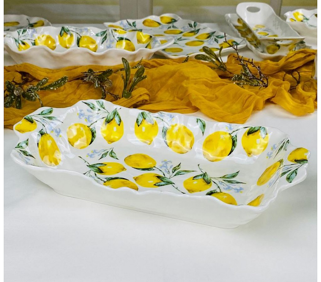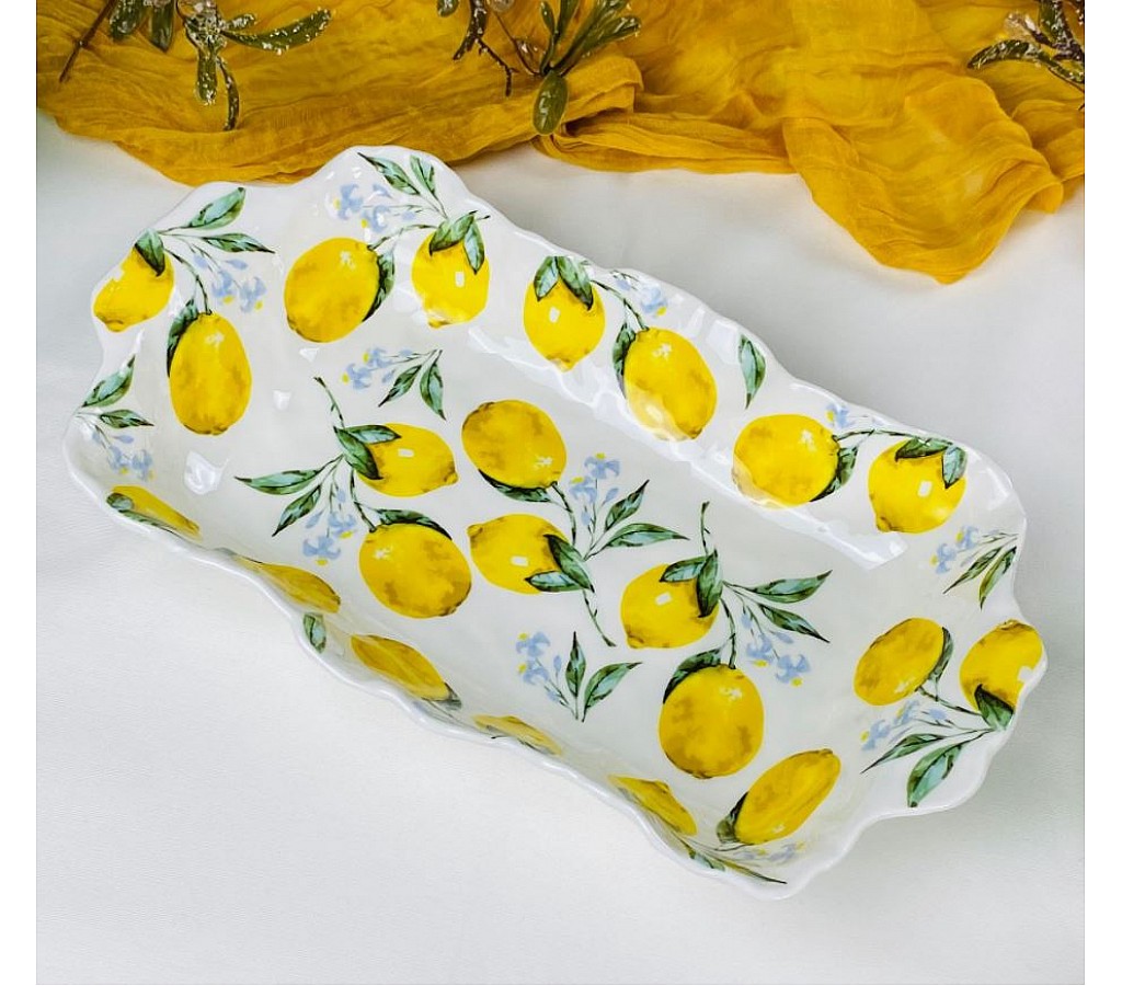 Прямоугольное глубокое блюдо 34 см Лимоны Lenardi