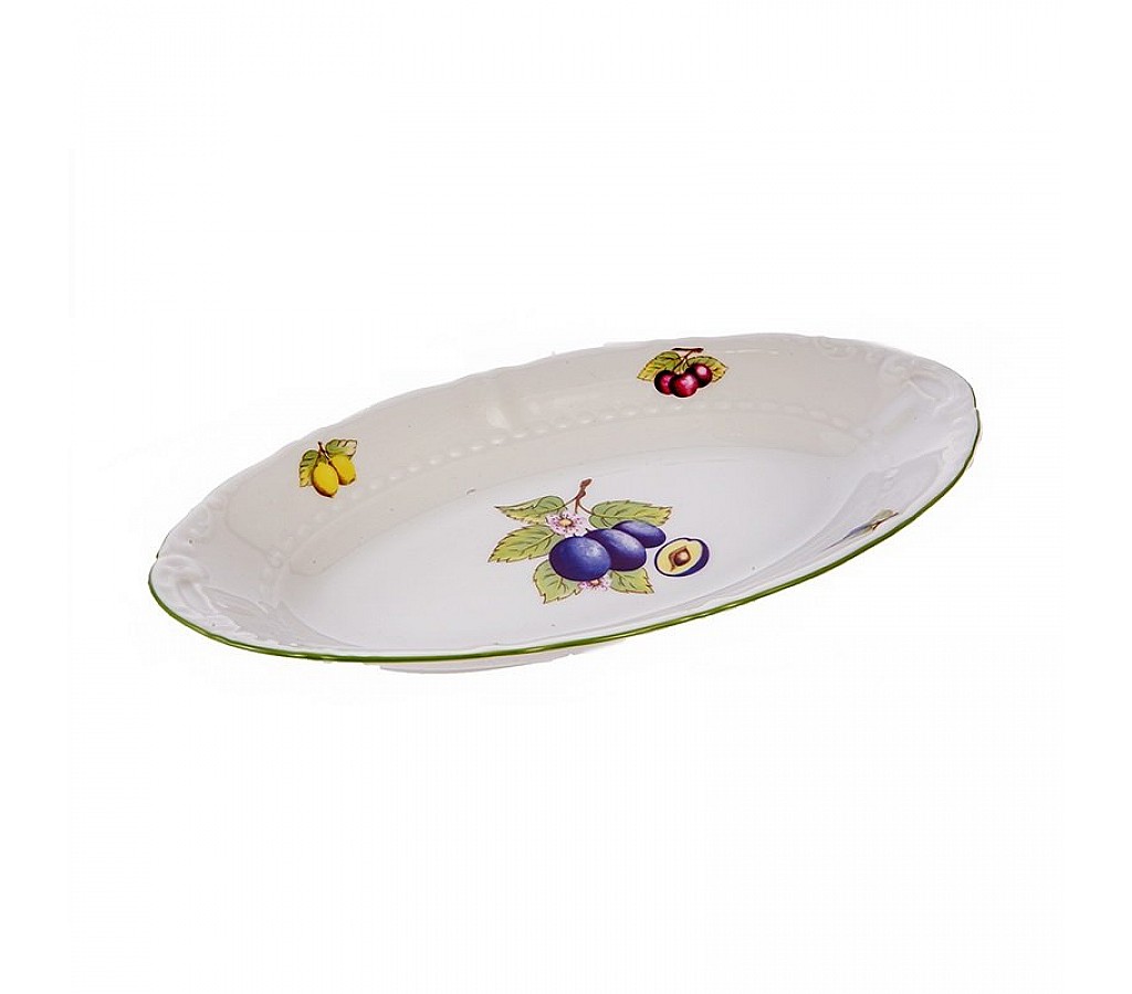Блюдо селедочница длиной 23см Leander коллекция Соната 2703 Фрукты будет эффектно смотреться и в городской квартире и в загородном доме. Вся посуда упакована в фирменные коробки. Ее можно мыть в посудомоечной машине и использовать в микроволновой печи.