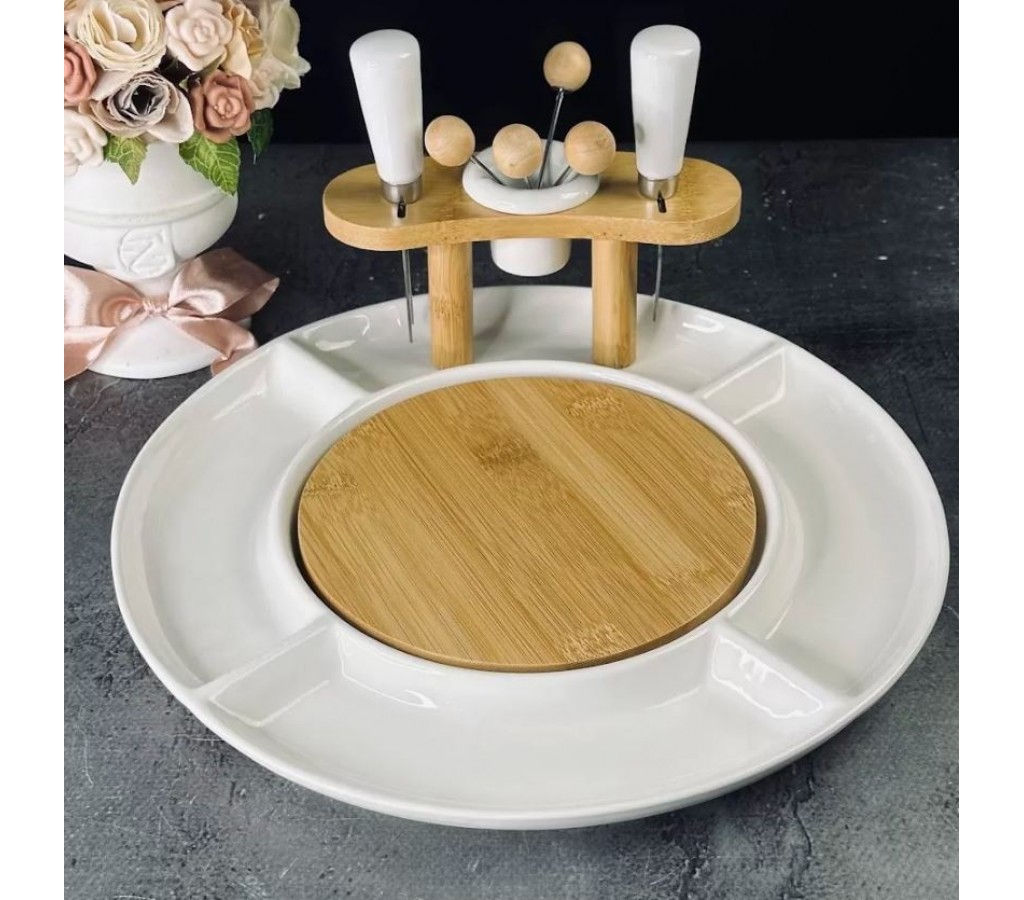 Сервировочная доска/блюдо 29 см для сыра с приборами 10 предметов Bamboo Lenardi