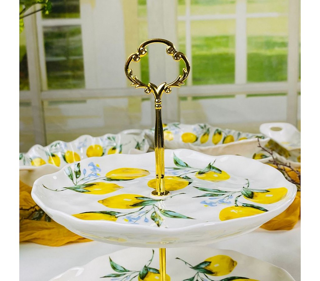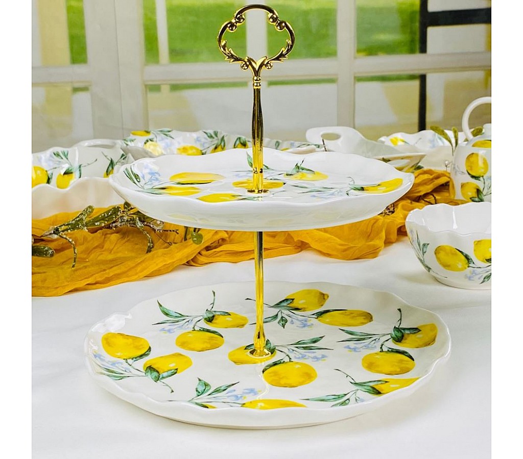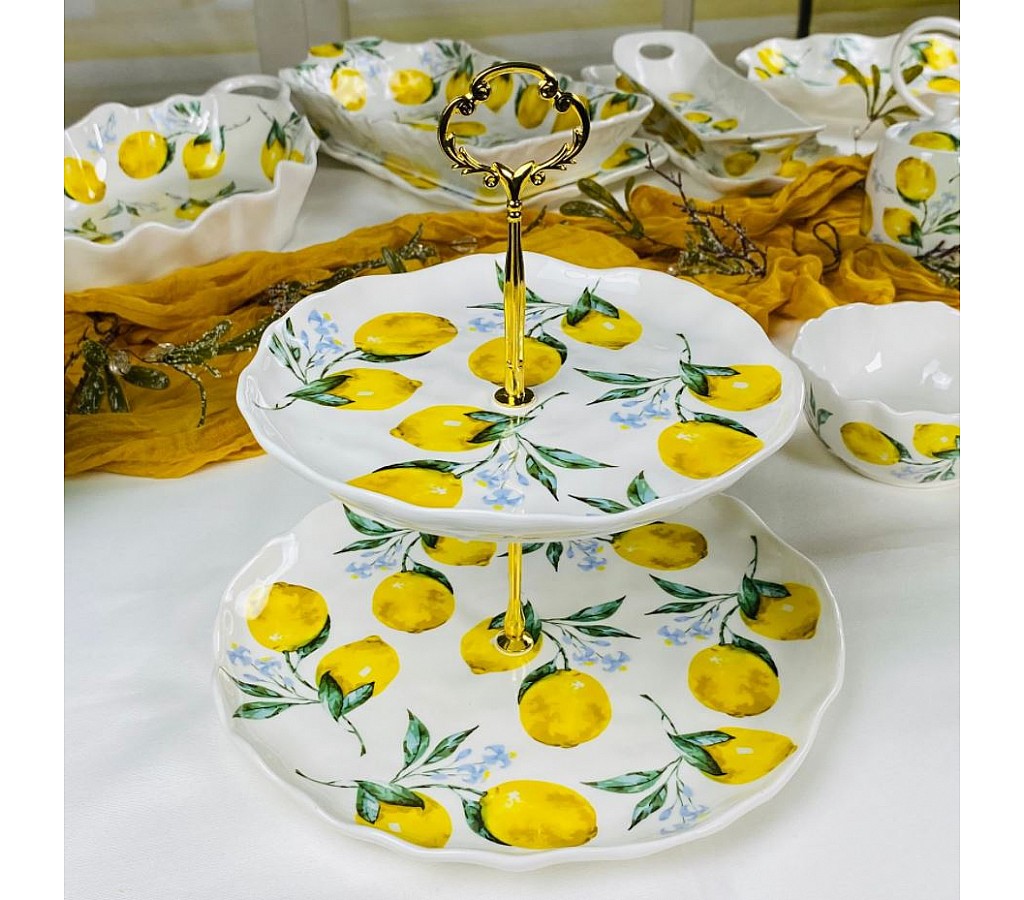 Двухъярусная этажерка тарелки 21,5 и 27 см Лимоны Lenardi