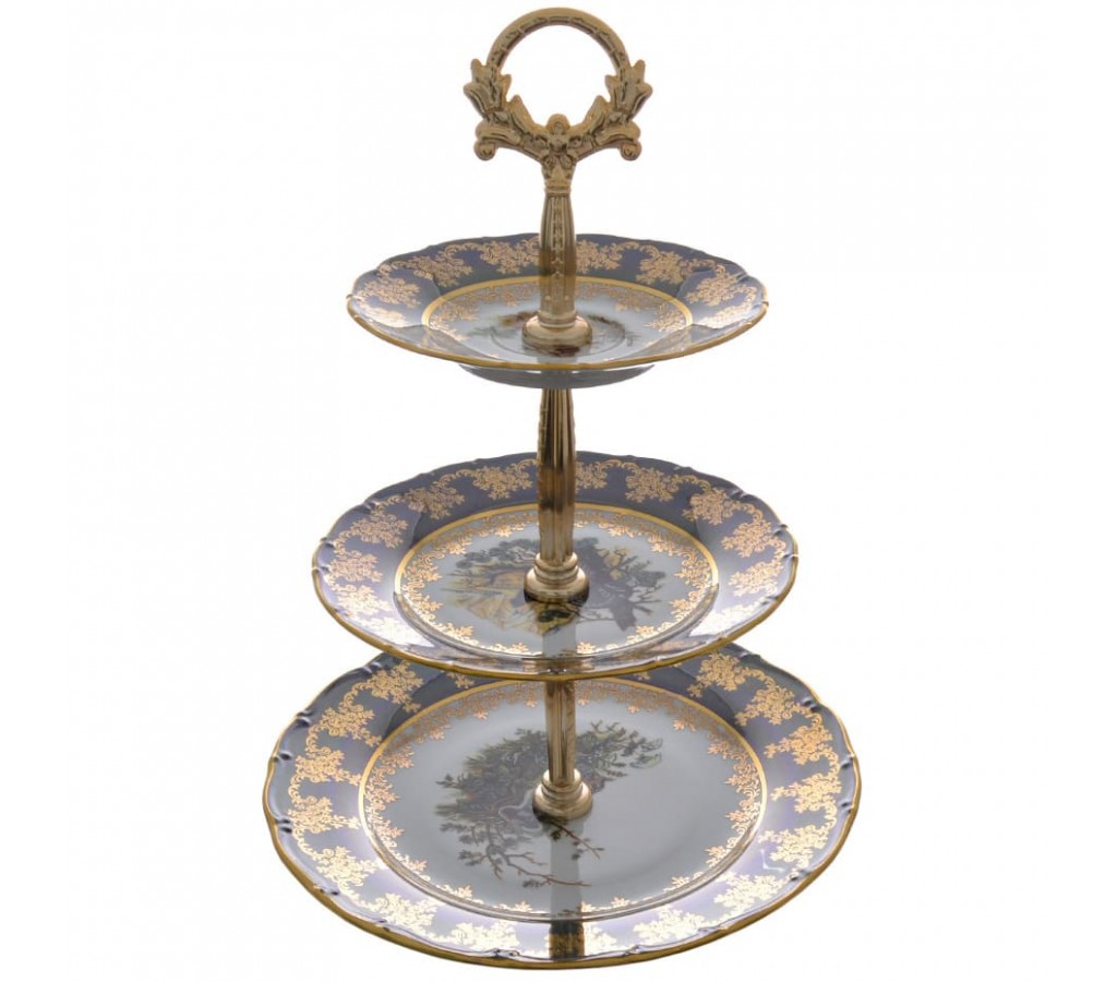Этажерка 3-х ярусная Queen's Crown Aristokrat Охота зеленая. Не подходит для использования в СВЧ-печи. Рекомендуется мыть руками во избежание повреждения декоративного покрытия. Обычная картонная упаковка.